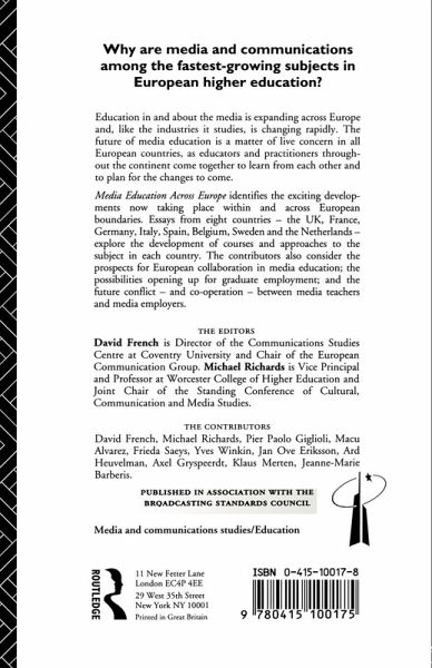 Education in and about the media is expanding across Europe and, like the industries it studies, is changing rapidly. The future of media education is a matter of live concern in all European countries, as educators and practitioners throughout the continent come together to learn from each other and to plan for the changes to come. Media Education Across Europe identifies the exciting developments now taking place within and across the boundaries of European nation-states. Essays from eight countries - the U.K., France, Germany, Italy, Spain, Belgium, Sweden and the Netherlands - explore the development of courses and approaches to the subject in each country. The contributors also consider the prospects for European collaboration in media education; the possibilities opening up for graduate employment and the future conflict - and co-operation - between media teachers and media employers.