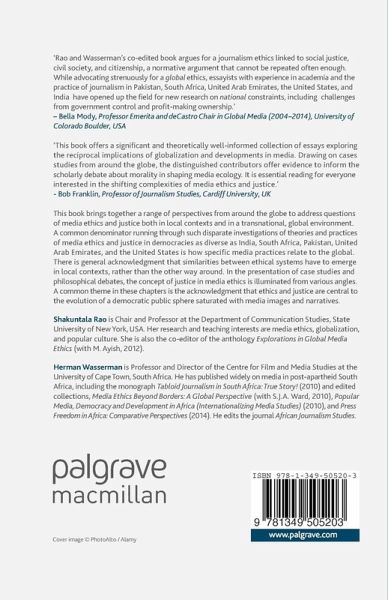 'Rao and Wasserman's co-edited book argues for a journalism ethics linked to social justice, civil society, and citizenship, a normative argument that cannot be repeated often enough. While advocating strenuously for a global ethics, essayists with experience in academia and the practice of journalism in Pakistan, South Africa, United Arab Emirates, the United States and India have opened up the field for new research on national constraints, including challenges from government control and profit-making ownership.'