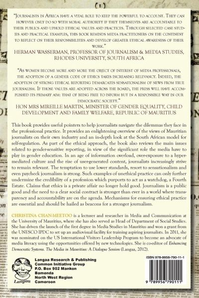 This book provides useful pointers to help journalists navigate the dilemmas they face in the professional practice. It provides an enlightening overview of the views of Mauritian journalists on their own industry and an in-depth look at the South African model for self-regulation. As part of the ethical approach, the book also reviews the main issues related to gender-sensitive reporting, in view of the significant role the media have to play in gender education. In an age of information overload, over-exposure to a hyper-mediated culture and the rise of user-generated content, journalists increasingly strive to remain relevant. The temptation to use lower standards, resort to sensationalism and even paycheck journalism is strong. Such examples of unethical practice can only further undermine the credibility of a profession which purports to act as a watchdog, a Fourth Estate. Claims that ethics is a private affair no longer hold good. Journalism is a public good and the need to a clear social contract is stronger than ever in a world where transparency and accountability are on the agenda. Mechanisms for ensuring ethical practice are essential and should be hailed as beacons for a stronger journalism.