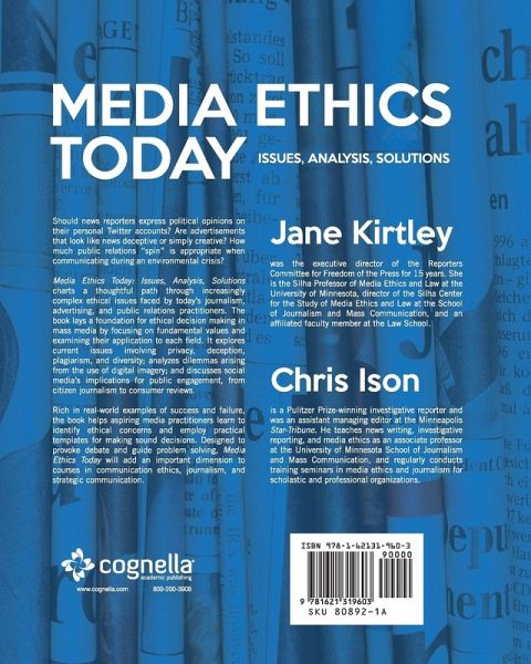 Should news reporters express political opinions on their personal Twitter accounts? Are advertisements that look like news deceptive or simply creative? How much public relations “spin” is appropriate when communicating during an environmental crisis? Media Ethics Today: Issues, Analysis, Solutions charts a thoughtful path through increasingly complex ethical issues faced by today’s journalism, advertising, and public relations practitioners. The book lays a foundation for ethical decision making in mass media by focusing on fundamental values and examining their application to each field. It explores current issues involving privacy, deception, plagiarism, and diversity; analyzes dilemmas arising from the use of digital imagery; and discusses social media’s implications for public engagement, from citizen journalism to consumer reviews. Rich in real-world examples of success and failure, the book helps aspiring media practitioners learn to identify ethical concerns and employ practical templates for making sound decisions. Designed to provoke debate and guide problem solving, Media Ethics Today will add an important dimension to courses in communication ethics, journalism, and strategic communication.