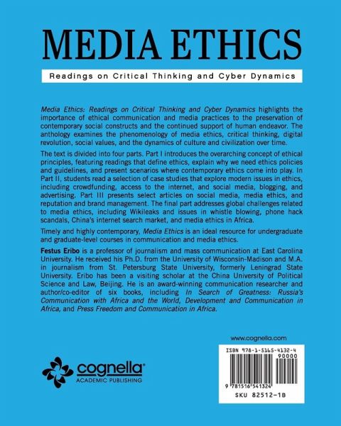 Media Ethics: Readings on Critical Thinking and Cyber Dynamics highlights the importance of ethical communication and media practices to the preservation of contemporary social constructs and the continued support of human endeavor. The anthology examines the phenomenology of media ethics, critical thinking, digital revolution, social values, and the dynamics of culture and civilization over time. The text is divided into four parts. Part I introduces the overarching concept of ethical principles, featuring readings that define ethics, explain why we need ethics policies and guidelines, and present scenarios where contemporary ethics come into play. In Part II, students read a selection of case studies that explore modern issues in ethics, including crowdfunding, access to the internet, and social media, blogging, and advertising. Part III presents select articles on social media, media ethics, and reputation and brand management. The final part addresses global challenges related to media ethics, including Wikileaks and issues in whistle blowing, phone hack scandals, China's internet search market, and media ethics in Africa. Timely and highly contemporary, Media Ethics is an ideal resource for undergraduate and graduate-level courses in communication and media ethics. Festus Eribo is a professor of journalism and mass communication at East Carolina University. He received his Ph.D. from the University of Wisconsin-Madison and M.A. in journalism from St. Petersburg State University, formerly Leningrad State University. Eribo has been a visiting scholar at the China University of Political Science and Law, Beijing. He is an award-winning communication researcher and author/co-editor of six books, including In Search of Greatness: Russia's Communication with Africa and the World, Development and Communication in Africa, and Press Freedom and Communication in Africa.
