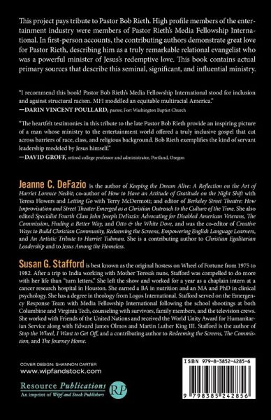 This project pays tribute to Pastor Bob Rieth. High profile members of the entertainment industry were members of Pastor Rieth’s Media Fellowship International. In first-person accounts, the contributing authors demonstrate great love for Pastor Rieth, describing him as a truly remarkable relational evangelist who was a powerful minister of Jesus's redemptive love. This book contains actual primary sources that describe this seminal, significant, and influential ministry.