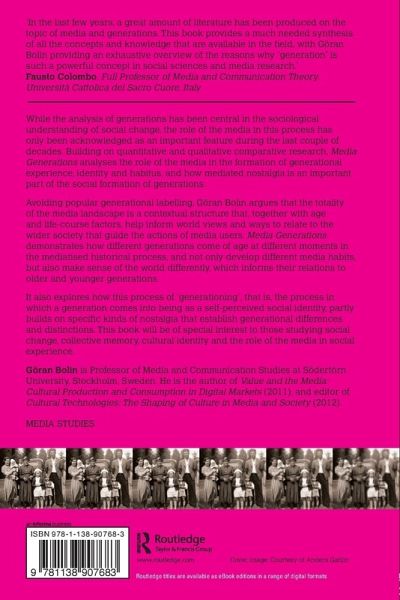 Avoiding popular generational labelling Göran Bolin argues that the totality of the media landscape is a contextual structure that together with age and life-course factors help inform world-views and ways to relate to the wider society that guide the actions of media users. Media Generations demonstrates how - as different generations come of age at different moments in the mediatised historical process - they develop different media habits, but also make sense of the world differently, which informs their relations to older and younger generations.