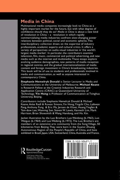 Multinational media companies increasingly look to China as a highly important market for the future, but with what degree of confidence should they do so? Media in China is about a new kind of revolution in China - a revolution in which rapidly commercializing media industries confront slow-changing power relations between political, social and economic spheres. This interdisciplinary collection draws on the expertise of industry professionals, academic experts and cultural critics. It offers a variety of perspectives on audio-visual industries in the world's largest media market. In particular, the contributors examine television, film, music, commercial and political advertising, and new media such as the internet and multimedia. These essays explore evolving audience demographies, new patterns of media reception in regional centres, and the gradual internationalization of media content and foreign investment in China's broadcasting industries. This book will of use to students and professionals involved in media and communication, as well as anyone interested in contemporary China.