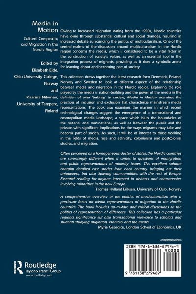 Owing to increased migration dating from the 1990s, Nordic countries have gone through substantial cultural and social changes, resulting in increased debate surrounding the politics of multiculturalism. One of the central realms of the discussion around multiculturalism in the Nordic region concerns the media, which is considered to be a vital factor in the construction of society's values, as well as an essential tool in the integration process of migrants, providing as it does a symbolic arena for learning about and becoming part of society. This collection draws together the latest research from Denmark, Finland, Norway and Sweden to look at different aspects of the relationship between media and migration in the Nordic region. Exploring the role played by the media in nation building and the power of the media in the definition of who 'belongs' in society, Media in Motion examines the practices of inclusion and exclusion that characterise mainstream media representations. The book also examines the manner in which recent technological changes suggest the emergence of a transnational and cosmopolitan media landscape; a space which blurs the boundaries of the national and transnational, as well as between the public and the private, with significant implications for the ways migrants may take and become part of society. As such, it will be of interest to those working in the fields of media, race and ethnicity, colonialism and postcolonial studies, and migration.