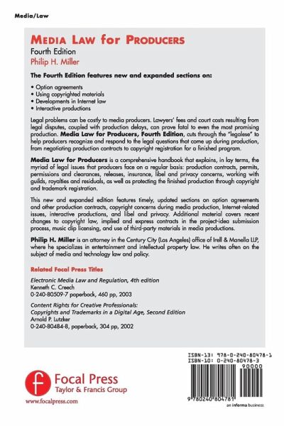 Media Law for Producers is a comprehensive handbook that explains, in lay terms, the myriad legal issues that the producer will face on a regular basis - contracts, permits, defamation, patents, releases and insurance, libel, royalties and residuals, as well as protecting the finished production. This revised and expanded edition includes such Internet-related topics as Internet music law, online registration, and online privacy. Other new topics covered include: Implied and express contracts in the project/idea submission process Assignment/transfer of copyright Music clip licensing Use of other people's trademarks in media production Parody as a defense to copyright infringement Clear explanations examine the how and why of different types of production contracts, and checklists provide a quick means for producers to determine when their productions might be at greatest risk to legal challenges. Media Law for Producers also examines the substantial changes in copyright term resulting from recent copyright legislation. Legal problems can be very costly to media producers. Lawyers and court fees, coupled with the loss of work time, can lead to bankruptcy. Media Law for Producers cuts through the legalese and illustrates legal issues to help producers recognize the legal questions that can arise during production. *A useful, practical guide for the active producer *Completely revised and updated to include a new chapter on Interactive Media *Contains new sample contracts and forms