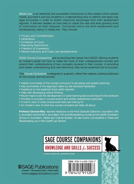 Media Law is an essential and accessible introduction to the subject that will assist media; journalism and law students understand key concepts and aid their revision. This book, designed to complement existing textbooks will advise readers on how best to utilise the vast and ever growing array of information at their disposal. The tone and level of this guide makes it easy to follow and should prove invaluable in helping students construct assessed coursework. Established principles and contemporary developments in media law are covered and include: " Privacy and Confidentiality " Defamation " Contempt of Court " Reporting Restrictions " Freedom of Expression " Recent statutory and Case Law developments. Readers are shown how to research, identify and crucially apply media law principles to meet their needs and those of their examiners. This book is part of the SAGE Course Companion Series. Developed as accessible reference tools, SAGE Course Companions offer an introduction to the subject and encourage students to extend their understanding of key concepts, issues and debates.