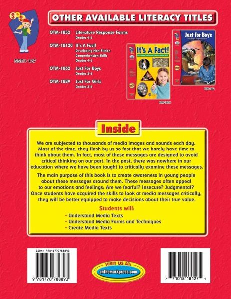 We are subjected to thousands of media images and sounds each day. Most of the time, they flash by us so fast that we barely have time to think about them. In fact, most of these messages are designed to avoid critical thinking on our part. In the past, there was nowhere in our education where we have been taught to critically examine these messages. The main purpose of this book is to create awareness in young people about those messages around them. These messages often appeal to our emotions and feelings; Are we fearful? Insecure? Judgmental? Once students have acquired the skills to look at media messages critically, they will be better equipped to make decisions about their true value. Students will understand media texts, understand media forms and techniques and create media texts. Includes 5 messages in media activities, 59 understanding and creating media text activities, and a teacher guide. Messages in MediaMedia Tricks Jingles and Slogans Clear and Hidden Messages Stereotypes Positive and Negative Messages Propaganda Understanding and Creating Media TextsI. Print Media II. Art/Picture Media III. Sound Media IV. Combination Media (print, pictures, sound) V. Digital Media