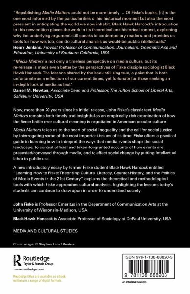 Now, more than 20 years since its initial release, John Fiske's classic text Media Matters remains both timely and insightful as an empirically rich examination of how the fierce battle over cultural meaning is negotiated in American popular culture. Media Matters takes us to the heart of social inequality and the call for social justice by interrogating some of the most important issues of its time. Fiske offers a practical guide to learning how to interpret the ways that media events shape the social landscape, to contest official and taken-for-granted accounts of how events are presented/conveyed through media, and to affect social change by putting intellectual labor to public use. A new introductory essay by former Fiske student Black Hawk Hancock entitled 'Learning How to Fiske: Theorizing Cultural Literacy, Counter-History, and the Politics of Media Events in the 21st Century' explains the theoretical and methodological tools with which Fiske approaches cultural analysis, highlighting the lessons today's students can continue to draw upon in order to understand society today.