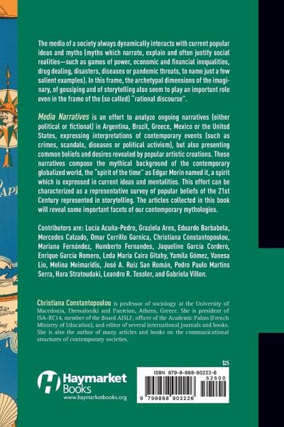 The media of a society always dynamically interacts with current popular ideas and myths (myths which narrate, explain and often justify social realities—such as games of power, economic and financial inequalities, drug dealing, disasters, diseases or pandemic threats, to name just a few salient examples). In this frame, the archetypal dimensions of the imaginary, of gossiping and of storytelling also seem to play an important role even in the frame of the (so called) “rational discourse”. Media Narratives is an effort to analyze ongoing narratives (either political or fictional) in Argentina, Brazil, Greece, Mexico or the United States, expressing interpretations of contemporary events (such as crimes, scandals, diseases or political activism), but also presenting common beliefs and desires revealed by popular artistic creations. These narratives compose the mythical background of the contemporary globalized world, the “spirit of the time” as Edgar Morin named it, a spirit which is expressed in current ideas and mentalities. This effort can be characterized as a representative survey of popular beliefs of the 21st Century represented in storytelling. The articles collected in this book will reveal some important facets of our contemporary mythologies. Contributors are: Lucia Acuña-Pedro, Graziela Ares, Eduardo Barbabela, Mercedes Calzado, Omar Cerrillo Garnica, Christiana Constantopoulou, Mariana Fernández, Humberto Fernandes, Jaqueline García Cordero, Enrique García Romero, Leda Maria Caira Gitahy, Yamila Gómez, Vanesa Lio, Melina Meimaridis, José A. Ruiz San Román, Pedro Paulo Martins Serra, Hara Stratoudaki, Leandro R. Tessler, and Gabriela Villen.