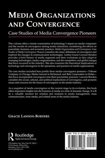 This volume offers a timely examination of technology's impact on media companies and the results of convergence among media industries, considering the effects on journalistic, business, and economic practices. Media Organizations and Convergence: Case Studies of Media Convergence Pioneers considers the many definitions of convergence and explores the changes in communication technologies. Author Gracie L. Lawson-Borders provides a brief history of media segments and their evolutions as they adapt to emerging technologies, media conglomeration, and the competitive and global changes that have occurred in the industry. She also examines the theoretical implications of technology and convergence in the operations and practices of media organizations. The case studies included here profile three media convergence pioneers--Tribune Company in Chicago, Media General in Richmond, and Belo Corporation in Dallas--that have incorporated convergence into their journalistic practices. Lawson-Borders considers the social, cultural, and political implications of convergence, and presents issues and concerns for the future of convergence in the media industry. As a snapshot of media convergence at the current stage in its evolution, this book offers important insights into the business of media at a time of dramatic change. It will be a valuable resource for scholars and students in media management, mass media, and related areas of the media industry.