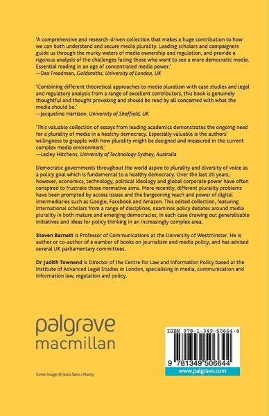 While policymakers in the world reiterate the importance of protecting voice diversity, traditional media conglomerates and new social media giants make their task increasingly challenging. This book assesses the current state of policy-making on media plurality and explores novel policy ideas for funding, regulatory and structural interventions.