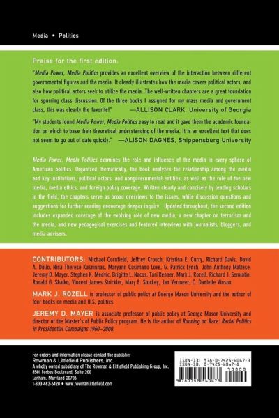 Media Power, Media Politics, Second Edition, examines the role and influence of the media in every sphere of American politics. Organized thematically, the book analyzes the relationship between the media and key institutions, political actors, and nongovernmental entities, as well as the role of the new media, media ethics, and foreign policy coverage. Written clearly and concisely by leading scholars in the field, the chapters serve as broad overviews to the issues, while discussion questions and suggestions for further reading encourage deeper inquiry. Updated throughout, the second edition includes expanded coverage of the evolving role of new media, a new chapter on terrorism and the media, and new pedagogical exercises and featured interviews with journalists, bloggers, and media advisers.