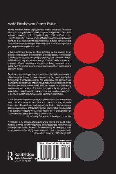 How do precarious workers employed in call-centres, universities, the fashion industry and many other labour markets organise, struggle and communicate to become recognised, influential political subjects? "Media Practices and Protest Politics; How Precarious Workers Mobilise" reveals the process by which individuals at the margins of the labour market and excluded from the welfare state communicate and struggle outside the realm of institutional politics to gain recognition in the political sphere. In this important and thought provoking work Alice Mattoni suggests an all-encompassing approach to understanding grassroots political communication in contemporary societies. Using original examples from precarious workers mobilizations in Italy she explores a range of activist media practices and compares different categories of media technologies, organizations and outlets from the printed press to web application and from mainstream to alternative media. Explaining how activists perceive and understand the media environment in which they are embedded the book discusses how they must interact with a diverse range of media professionals and technologies and considers how mainstream, radical left-wing and alternative media represent protests. Media Practices and Protest Politics offers important insights for understanding mechanisms and patterns of visibility in struggles for recognition and redistribution in post-democratic societies and provides a valuable contribution to the field of political communication and social movement studies.