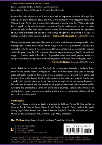 Introduction: Why Do First Lady Media Relations Matter? Lisa M. Burns Chapter 1: History of First Lady Media Relations from Martha Washington to Mamie Eisenhower Maurine H. Beasley Chapter 2: Jacqueline Kennedy and the Challenge of Establishing Modern First Lady Media Relations Elizabeth J. Natalle Chapter 3: Lady Bird Johnson and the Press: "She Understood the Language of the Trade" Nancy Keegan Smith and Diana Bartelli Carlin Chapter 4: Strength of a Tender Heart: Pat Nixon's Media Relations Linda B. Hobgood Chapter 5: "For all the questions you didn't ask-I'm grateful": The Media Relations of Betty Ford Myra G. Gutin Chapter 6: Rosalynn Carter, Mary Finch Hoyt, and the Media: The Rise of the Steel Magnolia Pamela G. Bourland-Davis, Jenni M. Simon, and Abby M. Brooks Chapter 7: The Boss's Wife: Exploring Nancy Reagan's Complicated Role as Homemaker, Protector, and Advocate Joshua M. Bentley and Russell Mack Chapter 8: First Lady Barbara Bush and Press Secretary Anna Perez: Lessons from an