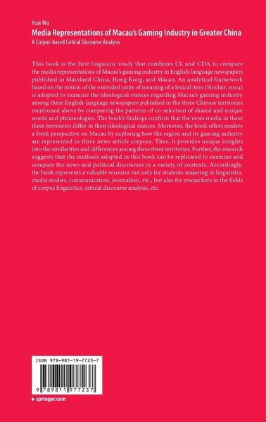 This book is the first linguistic study that combines CL and CDA to compare the media representations of Macau's gaming industry in English-language newspapers published in Mainland China, Hong Kong, and Macau. An analytical framework based on the notion of the extended units of meaning of a lexical item (Sinclair, 2004) is adopted to examine the ideological stances regarding Macau's gaming industry among three English-language newspapers published in the three Chinese territories mentioned above by comparing the patterns of co-selection of shared and unique words and phraseologies. The book's findings confirm that the news media in these three territories differ in their ideological stances. Moreover, the book offers readers a fresh perspective on Macau by exploring how the region and its gaming industry are represented in three news article corpora. Thus, it provides unique insights into the similarities and differences among these three territories. Further, the research suggeststhat the methods adopted in this book can be replicated to examine and compare the news and political discourses in a variety of contexts. Accordingly, the book represents a valuable resource not only for students majoring in linguistics, media studies, communication, journalism, etc., but also for researchers in the fields of corpus linguistics, critical discourse analysis, etc.