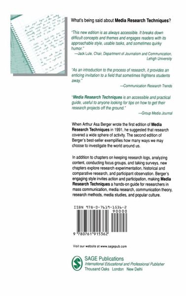 Arthur Asa Berger's essential guide to undertaking applied or practical research in media studies is designed to provide introductory techniques that allow students to engage immediately in their own research projects. In so doing, students learn various ways of conducting communication research both in theory and practice. In response to suggestions from users of the First Edition, Berger has added new chapters in each of the following areas: experimentation, historical research, comparative research and participant observation.