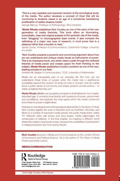 The media are an inescapable part of our everyday life. Drawing on sociological and anthropological approaches to the study of ritual, Nick Couldry applies the work of theorists to a number of important media arenas.