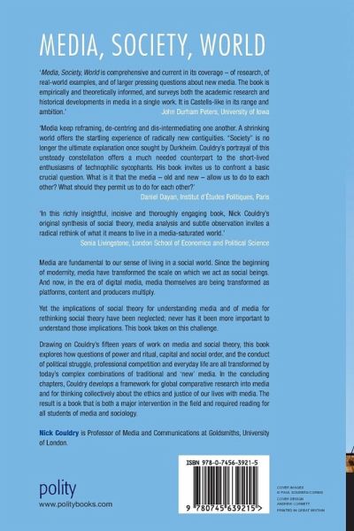 'Media keep reframing, de-centring and dis-intermediating one another. A shrinking world offers the startling experience of radically new contiguities. "Society" is no longer the ultimate explanation once sought by Durkheim. Couldry's portrayal of this unsteady constellation offers a much needed counterpart to the short-lived enthusiasms of technophilic sycophants. His book invites us to confront a basic crucial question. What is it that the media - old and new - allow us to do to each other? What should they permit us to do for each other?' -- Daniel Dayan, Institut d'Etudes Politiques, Paris