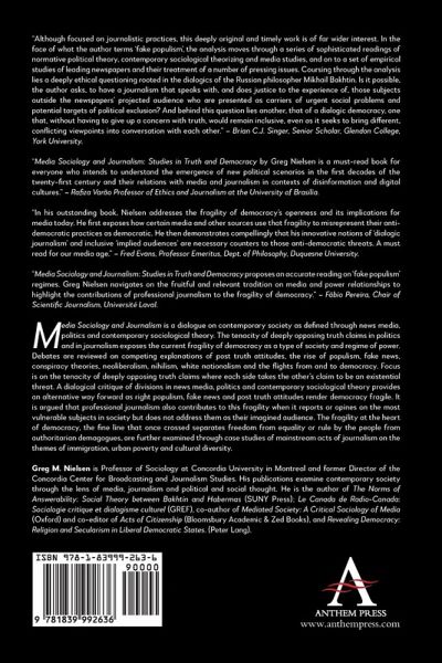 Acknowledgments Introduction: Between the Posts 1 Fake Populism and News: Freedom versus Democracy 2 Political Theory: Deliberative, Agonistic and Dialogic Democracy 3 Contemporary Sociology, Journalism and Society 4 Acts of Journalism: Truth, Ghosts and Migrant Subjects 5 Writing Inequality into the Urban Commons 6 Exotopy and Cultural Boundaries: The Secular Question in Quebec Conclusion: Deliberative or Dialogic Democracy? Conclusion: Is Another Journalism Possible? References Index