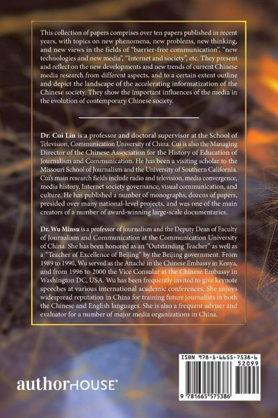 This collection of papers comprises over ten papers published in recent years, with topics on new phenomena, new problems, new thinking, and new views in the fields of "barrier-free communication", "new technologies and new media", "Internet and society", etc. They present and reflect on the new developments and new trends of current Chinese media research from different aspects, and to a certain extent outline and depict the landscape of the accelerating informatization of the Chinese society. They show the important influences of the media in the evolution of contemporary Chinese society.