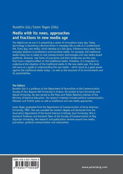The digital era we are in is presenting a series of innovations every day. Today, technology is becoming a decisive factor in everyday life as well as in professional life. Every day, new media, which develop at a fast pace, influence many areas from everyday relations to professions and transform media. For example, the traditional media today has to adapt to new communication technologies and new media-based platforms. However, new forms of journalism and their tendencies are the ones that have a negative effect on the traditional media. Therefore, it is important to understand the situation of the traditional media in the new media age. This book will serve as a guide to understanding the new media - which stand as a great power against the traditional media today - as well as the structure of its environments and its potentialities.