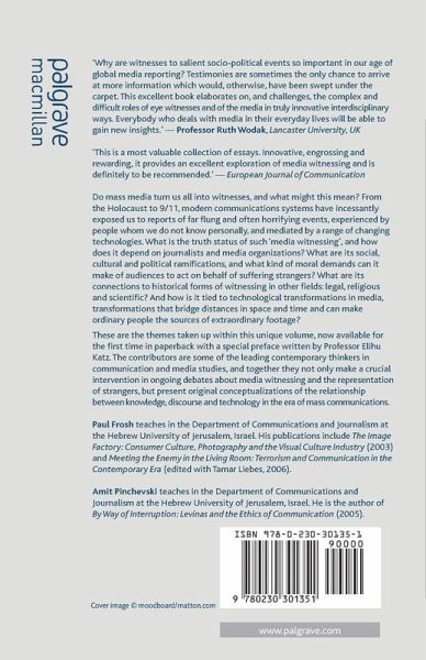 'Why are witnesses to salient socio-political events so important in our age of global media reporting? Testimonies are sometimes the only chance to arrive at more information which would, otherwise, have been swept under the carpet. This excellent book elaborates on, and challenges, the complex and difficult roles of eye witnesses and of the media in truly innovative interdisciplinary ways. Everybody who deals with media in their everyday lives will be able to gain new insights.' - Professor Ruth Wodak, Lancaster University, UK