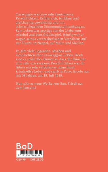 Caravaggio war eine sehr kontroverse Persönlichkeit. Erfolgreich, berühmt und gleichzeitig gewalttätig und mit schwerwiegenden Stimmungsschwankungen. Sein Leben war geprägt von der Liebe zum Alkohol und dem Glücksspiel. Häufig war er wegen seines verbrecherischen Verhaltens auf der Flucht: in Neapel, auf Malta und Sizilien.Es gibt viele Legenden, Mythen und Geschichten über Caravaggios Leben. Doch sind es wohl eher Hinweise, dass der Künstler eine sehr extravagante Persönlichkeit war. Er führte ein sehr turbulentes, manchmal kriminelles Leben und starb in Porto Ercole nur mit 38 Jahren, am 18. Juli 1610.Nun gibt es neue Werke von ihm. Frisch aus dem Jenseits!