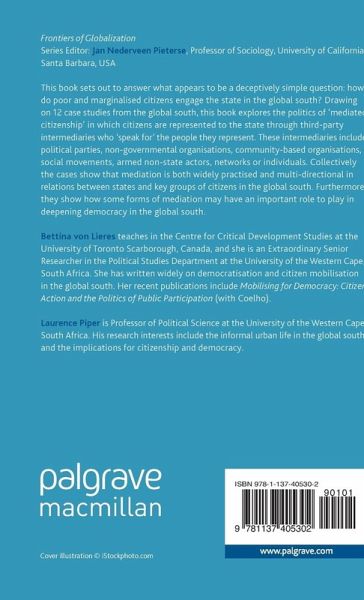 Introduction: The Crucial Role of Mediators in Relations between States and Citizens; Laurence Piper and Bettina von Lieres PART I: MEDIATING THE CITY 1. Mediation and the Contradictions of Representing the Urban Poor in South Africa: The Case of Sanco Leaders in Imizamo Yethu in Cape Town, South Africa 2. Citizen Power or State Weakness? The Enduring History of Collective Action in a Hyderabadi Bazaar; Shylashri shankar 3. The Politics of Mediation in Fragile Democracies: Building New Social Contracts Through, and for, Democratic Citizenship in Angola; Bettina von Lieres 4. 'Parallel Power' In Rio de Janeiro: Coercive Mediators and the Fragmentation of Citizenship in the Favela; Joanna wheeler PART II: MEDIATING THE NATIONAL 5. Challenging the Gatekeepers: Disability Rights Advocacy and the Struggle for Self-Representation within Lebanon's Postwar Sectarian Democracy; Paul Kingston 6. Mediation in India's Policy Spaces; Deepta Chopra 7. Mediating Active Citizenship and Social Mobility in Working Class Schools: The Case of Equal Education in Khayelitsha, Cape Town; Brahm Fleisch and Steven Robins 8. Mobilising for Democracy: Civil Society Mediation and Access to Policy in India; Ranjita Moha 9. Mediation at the Grassroots: Claiming Rights by Empowering Citizens in Bangladesh; Lopita Huq and Simeen Mahmud PART III: MEDIATING THE POST-NATIONAL 10: Mediation as Diplomacy: Dynamics of Governance and Representation in Brazilian Indigenous Societies; Alex Shankland 11. Achieving First Nation Self-Government In Yukon, Canada: The Mediating Role of the Council for Yukon Indians (cyi), 1975-1995*; Roberta Rice 12. Transnationalisation as Mediation: Uyghur's Rights-Based Mobilisation Outside China; Laura Trajber Waisbich
