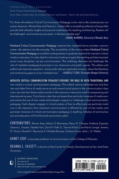 Mediated Critical Communication Pedagogy explores the role of both traditional and new media in critical communication pedagogy. This edited volume addresses not only how new and other forms of media serve as tools towards social justice in the communication classroom, but also how those media transform the classroom interaction itself in empowering and disempowering ways. Contributors describe and assess how particular instances of media use-particularly the use of new media technologies-support or challenge critical communication pedagogy. Each chapter engages in critical analysis of how to effectively use particular mediums in the classroom, how classroom communication is affected by uses of new media, and particular instances of critical communication pedagogy in teaching. Scholars of communication and education will find this book particularly useful.