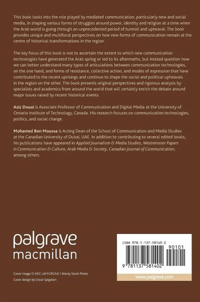This book looks into the role played by mediated communication, particularly new and social media, in shaping various forms of struggles around power, identity and religion at a time when the Arab world is going through an unprecedented period of turmoil and upheaval. The book provides unique and multifocal perspectives on how new forms of communication remain at the centre of historical transformations in the region. The key focus of this book is not to ascertain the extent to which new communication technologies have generated the Arab spring or led to its aftermaths, but instead question how we can better understand many types of articulations between communication technologies, on the one hand, and forms of resistance, collective action, and modes of expression that have contributed to the recent uprisings and continue to shape the social and political upheavals in the region on the other. The book presents original perspectives and rigorous analysis by specialists and academics from around the world that will certainly enrich the debate around major issues raised by recent historical events.