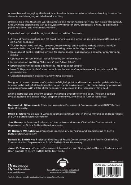 A look at how journalists and PR practitioners use and write for social media platforms such as X and Facebook;Tips for better web writing, research, interviewing, and headline writing across multiple media platforms, including covering breaking news in the digital world;Coverage of public relations writing for digital media, publications, and other organizational media;Updates on current ethical issues faced by communicators;Information on spotting "fake news" and "deep fakes";Strategies for integrating sound bites into broadcast scripts;New "It Happened to Me" anecdotes from the authors' experiences as journalists and PR professionals;Updated discussion questions and writing exercises.