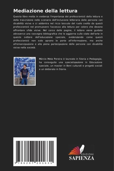Questo libro mette in evidenza l'importanza dei professionisti della lettura e della trascrizione nello scenario dell'inclusione letteraria delle persone con disabilità visiva e si addentra nel ricco tessuto del ruolo svolto da questi professionisti nel promuovere l'accesso alla lettura per coloro che devono affrontare sfide visive. Nel corso delle pagine, il lettore viene guidato attraverso una rassegna bibliografica che lo aggiorna sullo stato dell'arte in questo settore dell'educazione speciale, evidenziando come questi professionisti non solo aprano le porte all'informazione, ma anche all'emancipazione e alla piena partecipazione delle persone con disabilità visiva nella società.