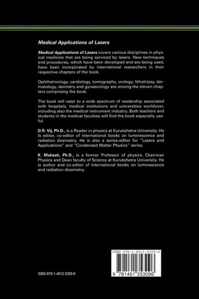 A careful review of the literature covering various aspects of applications of lasers in science and technology reveals that lasers are being applied very widely throughout the entire gamut of physical medicine. After surveying the current developments taking place in the field of medical applications of lasers, it was considered appropriate to bring together these efforts of international research scientists and experts into one volume. It is with this aim that the editors have prepared this volume which brings current research and recent developments to the attention of a wide spectrum of readership associated with hospitals, medical institutions and universities world wide, including also the medical instrument industry. Both teachers and students in the medical faculties will especially find this compendium quite useful. This book is comprised of eleven chapters. All of the important medical applications of lasers are featured. The editors have made every effort that individual chapters are self-contained and written by experts. Emphasis has been placed on straight and simple presentation of the subject matter so that even the new entrants into the field will find the book of value.