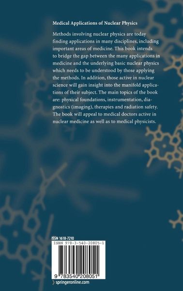 Methods involving nuclear physics are today finding applications in many disciplines, including important areas of medicine. This book intends to bridge the gap between the many applications in medicine and the underlying basic nuclear physics which needs to be understood by those applying the methods. In addition, those active in nuclear science will gain insight into the manifold applications of their subject. The main topics of the book are: physical foundations, instrumentation, diagnostics (imaging), therapies and radiation safety. The book will appeal to medical doctors active in nuclear medicine as well as to medical physicists.