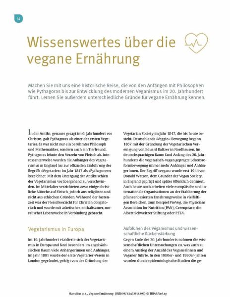 - Nährstoffe: Erfahren Sie, wie die Versorgung mit allen Nährstoffen wie Eisen, Eiweiß und Co. gesichert ist, welche Supplemente sinnvoll sind und wie ein veganer Tagesplan mit perfekt abgestimmten Lebensmitteln aussieht.