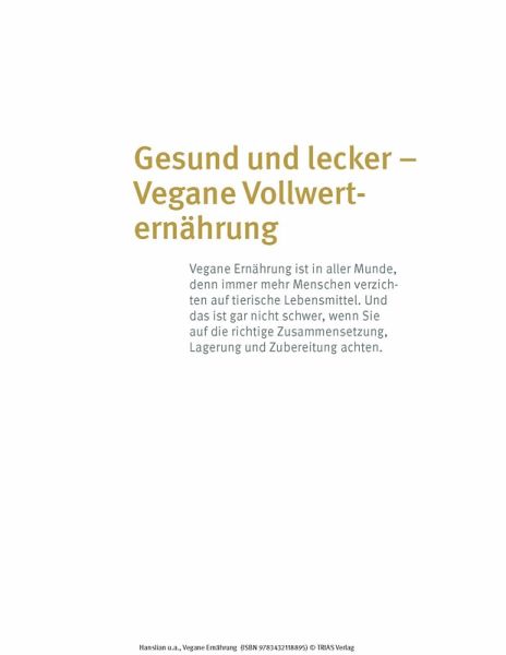 - Vegane Powerlebensmittel: Lernen Sie die Fülle veganer Lebensmittel kennen: Hülsenfrüchte, Getreidesorten wie Hafer, Quinoa & Co, Gemüse, Obst und Beeren, Nüsse, Samen und Sprossen, Gewürze. Extra: Die wichtigsten Inhaltsstoffe, Lagerung und Zubereitung.