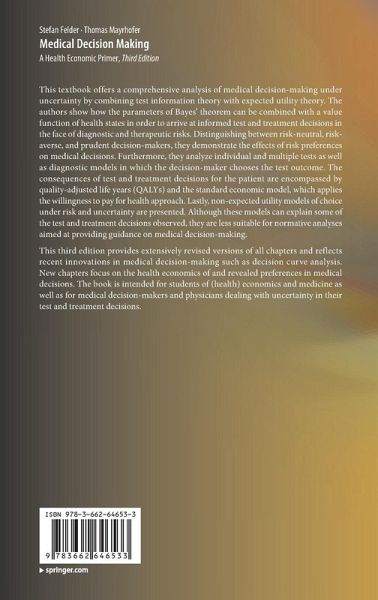 This third edition provides extensively revised versions of all chapters and reflects recent innovations in medical decision-making such as decision curve analysis. New chapters focus on the health economics of and revealed preferences in medical decisions. The book is intended for students of (health) economics and medicine as well as for medical decision-makers and physicians dealing with uncertainty in their test and treatment decisions.