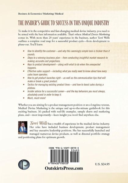 The Insider's Guide to Success in this Unique Industry To make it in the competitive and fast-changing medical device industry, you need to be armed with the best information available. That's where Medical Device Marketing comes in. With more than 20 years' experience in the business, author Terri Wells outlines a complete road map for a successful product cycle-from development to phase-out. You'll learn: ¿How to identify the customer-and why this seemingly simple task is trickier than it sounds. ¿Steps to a winning business plan-from conducting insightful market research to making accurate cost projections. ¿Keys to product development-along with what to do when the unexpected happens. ¿Effective sales support-including what you really need to know about how every sales team operates. ¿How to get product launches right-as well as the communication tips that will make or break a great product. ¿Tactics for managing existing product lines-and how to boost sales during a plateau. ¿Insider advice for a successful career-and the key behaviors you must always, absolutely avoid in order to keep it. ¿Much, much more! Whether you are aiming for a product management position or are a longtime veteran, Medical Device Marketing is the unique and up-to-the-minute guidebook for this exciting business. It's packed with real-life examples, sample charts and marketing plans, and-most importantly-keen insight you won't find anywhere else.