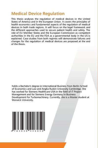 This thesis analyses the regulation of medical devices in the United States of America and in the European Union. It covers the principles of health economics and fundamental aspects of the regulation of medical devices in both trade regions. It will focus on the legal framework and the different approaches used to secure patient health and safety. The role of EU Member States and the European Commission as competent authorities in the EU and the FDA as a governmental body in the US is explained. Case studies from both regimes will demonstrate failures and changes for the regulation of medical devices are proposed at the end of the thesis.