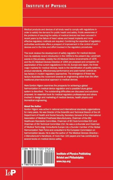 Medical Device Safety: The Regulation of Medical Devices for Public Health and Safety examines the prospects for achieving global harmonization in medical device regulation and describes a possible future global system. Unresolved difficulties are discussed while solutions are proposed. An essential book for all those involved in health physics, engineering, and medical regulatory affairs.