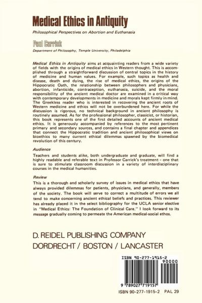 `... a thorough and scholarly survey of issues in medical ethics that have always provided dilemmas for patients, physicians, and generally, members of the society. The book will serve to correct a multitude of errors we all tend to make concerning ancient ethical beliefs and practices. We have much to learn from Professor Carrick, who examines and expounds that wisdom with great felicity.'
