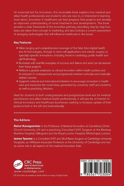 An essential text for innovators, this book provides a clear framework for the innovation pathway, describing step-by-step how projects are taken from concept to marketing, and also includes a current assessment of emerging technologies that will influence medical innovation in the future.