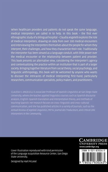 Claudia Angelelli explores the role of medical interpreters, drawing on data from over 300 medical encounters as well as interviews with the interpreters. Bringing together literature from social theory, social psychology, and linguistic anthropology, this book will appeal to anyone concerned with the intricacies of medical interpreting, particularly researchers, communication specialists, policy makers, and practitioners.