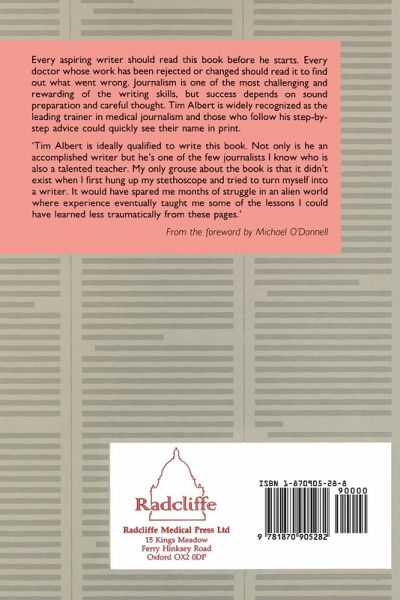 Every aspiring writer should read this book before he starts. Every doctor whose work has been rejected or changed should read it to find out what went wrong. Journalism is one of the msot challenging and rewarding of the writing skills, but success depends on sound preparation and careful thought. Tim Albert is widely recognized as the leading trainer in medical journalism and those who follow his step-by-step advice could quickly see their name in print. 'Tim Albert is ideally qualified to write this book. Not only is he a accomplished writer but he's one of the few journalists I know who is also a talented teacher. My only grouse about the book is that it didn't exist when I first hung up my stehoscope and tried to turn myself into a writer. It would have spared me months of struggle in an alien world where experience eventually taught me some of the lessons I could have learned less traumatically from these pages.' From the foreword by Michael O'Donnell