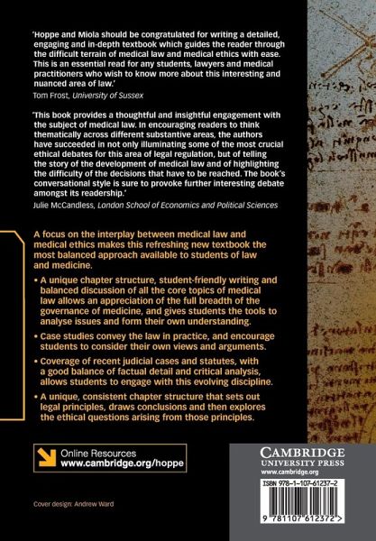 A focus on the interplay between medical law and medical ethics makes this refreshing new textbook the most balanced approach available to students of law and medicine. By offering a unique chapter structure which gives equal weight to both the legal and ethical issues it allows for an appreciation of all factors at play in the field of medical law. In addition, its student-friendly writing style combined with critical analysis gives students the tools to engage with key issues and form their own understanding. Accompanying online case studies convey the law in practice, and encourage students to consider their own views and arguments in terms of legal analysis and ethical consideration. Coverage of recent judicial cases and statutes, with a good balance of factual detail and critical analysis, allows students to engage with this evolving discipline.