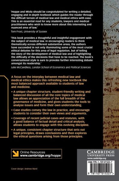 A focus on the interplay between medical law and medical ethics makes this refreshing new textbook the most balanced approach available to students of law and medicine. By offering a unique chapter structure which gives equal weight to both the legal and ethical issues it allows for an appreciation of all factors at play in the field of medical law. In addition, its student-friendly writing style combined with critical analysis gives students the tools to engage with key issues and form their own understanding. Accompanying online case studies convey the law in practice, and encourage students to consider their own views and arguments in terms of legal analysis and ethical consideration. Coverage of recent judicial cases and statutes, with a good balance of factual detail and critical analysis, allows students to engage with this evolving discipline.