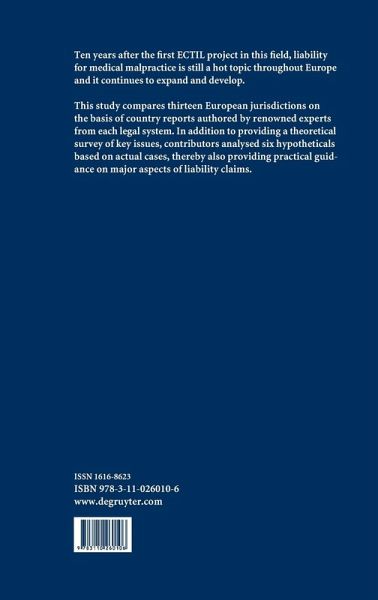 Ten years after the first study published in this field by the European Centre of Tort and Insurance Law, liability for medical malpractice is still a hot topic throughout Europe and it continues to expand and develop. In order to provide an update on the current situation across European legal systems, this book includes fourteen country reports authored by renowned experts from each legal system. In addition to providing a theoretical survey of key issues, each contributor also analyzed six hypotheticals based on actual cases, thereby also providing practical guidance on major aspects of liability claims. A concluding comparative analysis highlights commonalities and differences in the liability rules employed, dispute resolution procedures and the insurance background.