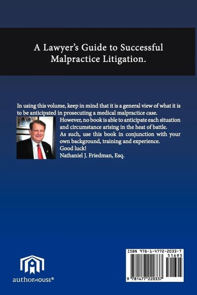 A Lawyer's Guide to Successful Malpractice Litigation. In using this volume, keep in mind that it is a general view of what it is to be anticipated in prosecuting a medical malpractice case. However, no book is able to anticipate each situation and circumstance arising in the heat of battle. As such, use this book in conjunction with your own background, training and experience. Good luck! Nathaniel J. Friedman, Esq.