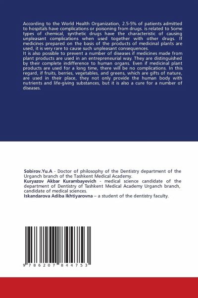 According to the World Health Organization, 2.5-5% of patients admitted to hospitals have complications or poisoning from drugs. is related to Some types of chemical, synthetic drugs have the characteristic of causing unpleasant complications when used together with other drugs. If medicines prepared on the basis of the products of medicinal plants are used, it is very rare to cause such unpleasant consequences.It is also possible to prevent a number of diseases if medicines made from plant products are used in an entrepreneurial way. They are distinguished by their complete indifference to human organs. Even if medicinal plant products are used for a long time, there will be no complications. In this regard, if fruits, berries, vegetables, and greens, which are gifts of nature, are used in their place, they not only provide the human body with nutrients and life-giving substances, but it is also a cure for a number of diseases.